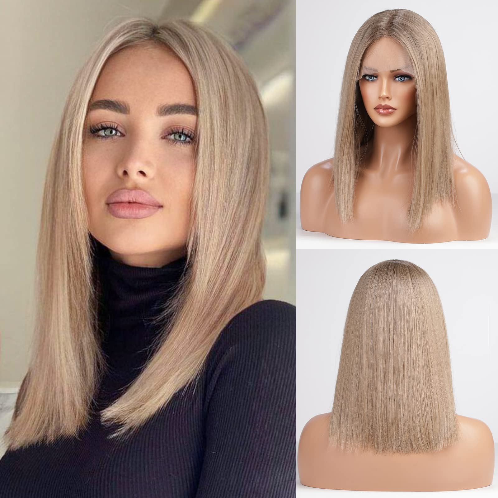HAIRCUBE Ash Blonde Lace Front Wigs for Women Shoulder Length Bob Wig with Natural Hairline 18inches